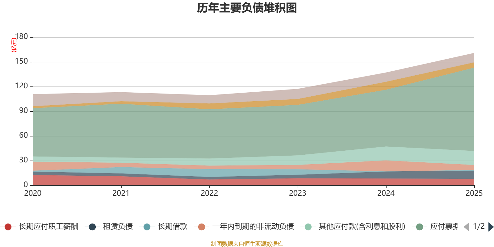欠债要紧变化方面,截止2025年末,公司搪塞单子及搪塞账款较上年末加多46.92%,占公司总财富比重飞腾7.12个百分点;一年内到期的非流动欠债较上年末减少55.1%,占公司总财富比重着落4.11个百分点;短期借债较上年末减少33.91%,占公司总财富比重着落2.15个百分点;其他搪塞款(含利息和股利)较上年末加多1.07%,占公司总财富比重着落1.37个百分点。