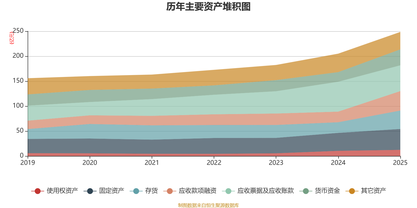 财富要紧变化方面,截止2025年末,公司应收单子及应收账款较上年末减少13.57%,占公司总财富比重着落8.4个百分点;应收款项融资较上年末加多83.16%,占公司总财富比重飞腾5.29个百分点;存货较上年末加多73.21%,占公司总财富比重飞腾4.46个百分点;货币资金较上年末加多64.81%,占公司总财富比重飞腾3.39个百分点。