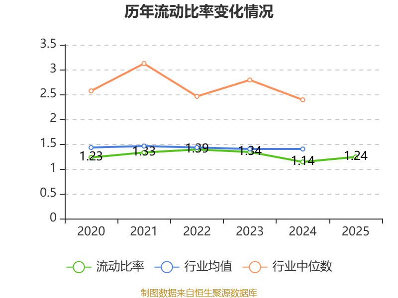 2025年,公司流动比率为1.24,速动比率为0.97。