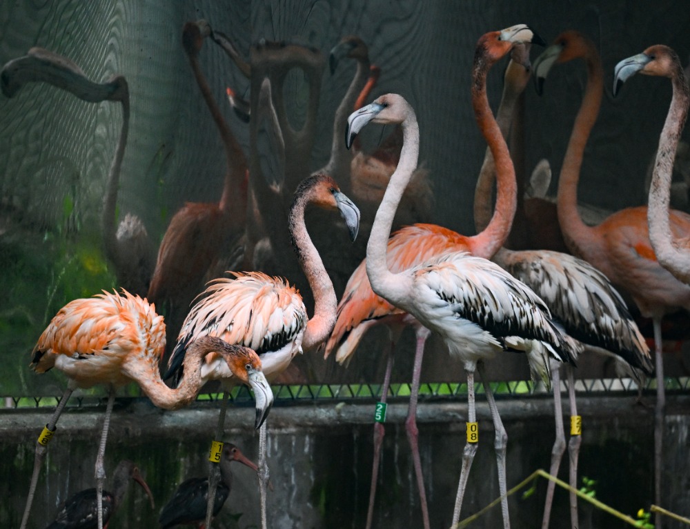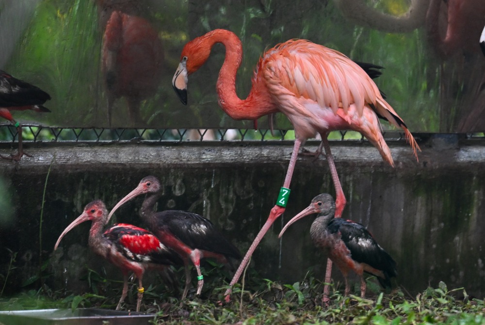 在鸟语林,好意思洲红鹮、古巴火烈鸟以及“原住民”大红鹳成为焦点。