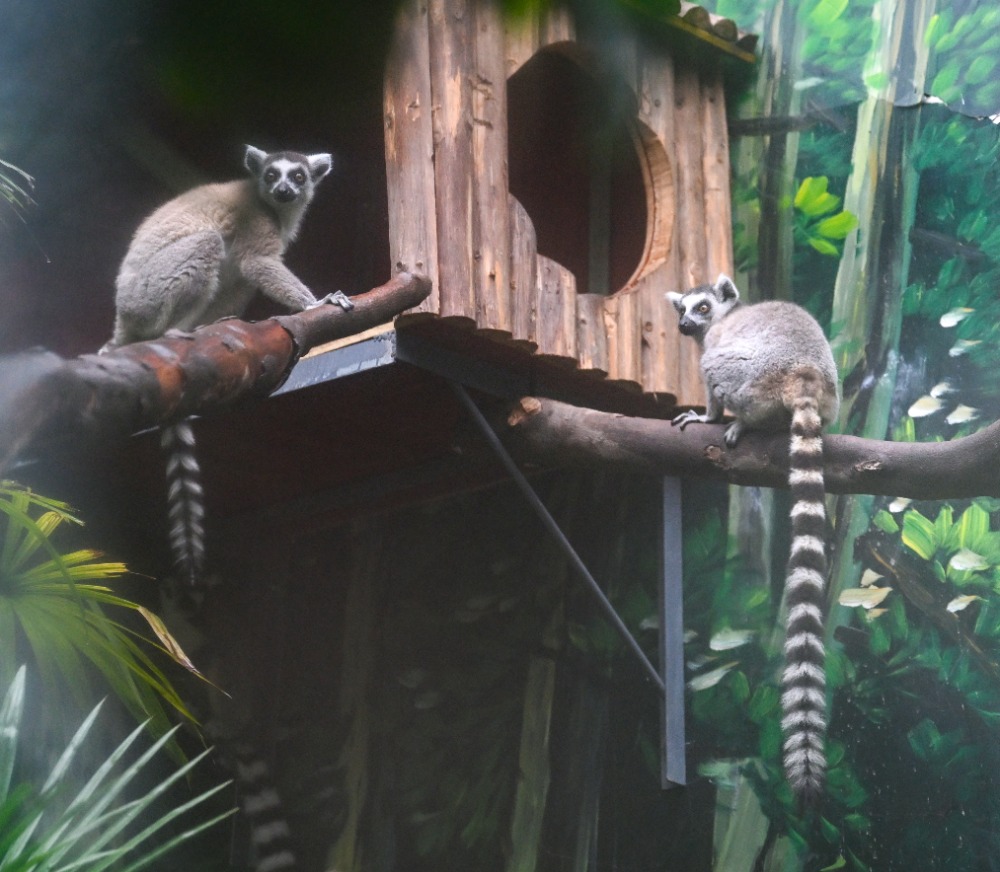 沿着弯曲步说念前行,其他场馆相似有新发现。新引进的2只长颈鹿分辨为一岁多和两岁傍边的亚成体,正在啃食树叶树枝;大羚羊腿部有较着的玄色图章,与其他伙伴“浑然一体”;4只环尾狐猴记号性的猛烈环纹尾巴高高扬起......